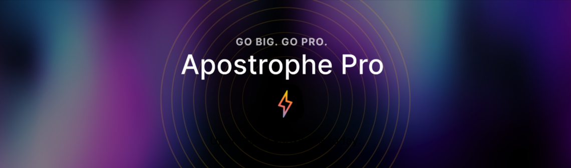 We hope you are just as thrilled about Apostrophe Pro as we are. And we are even more excited about what’s to come. As always, we plan to keep you updated, but for now - go big, go Pro!